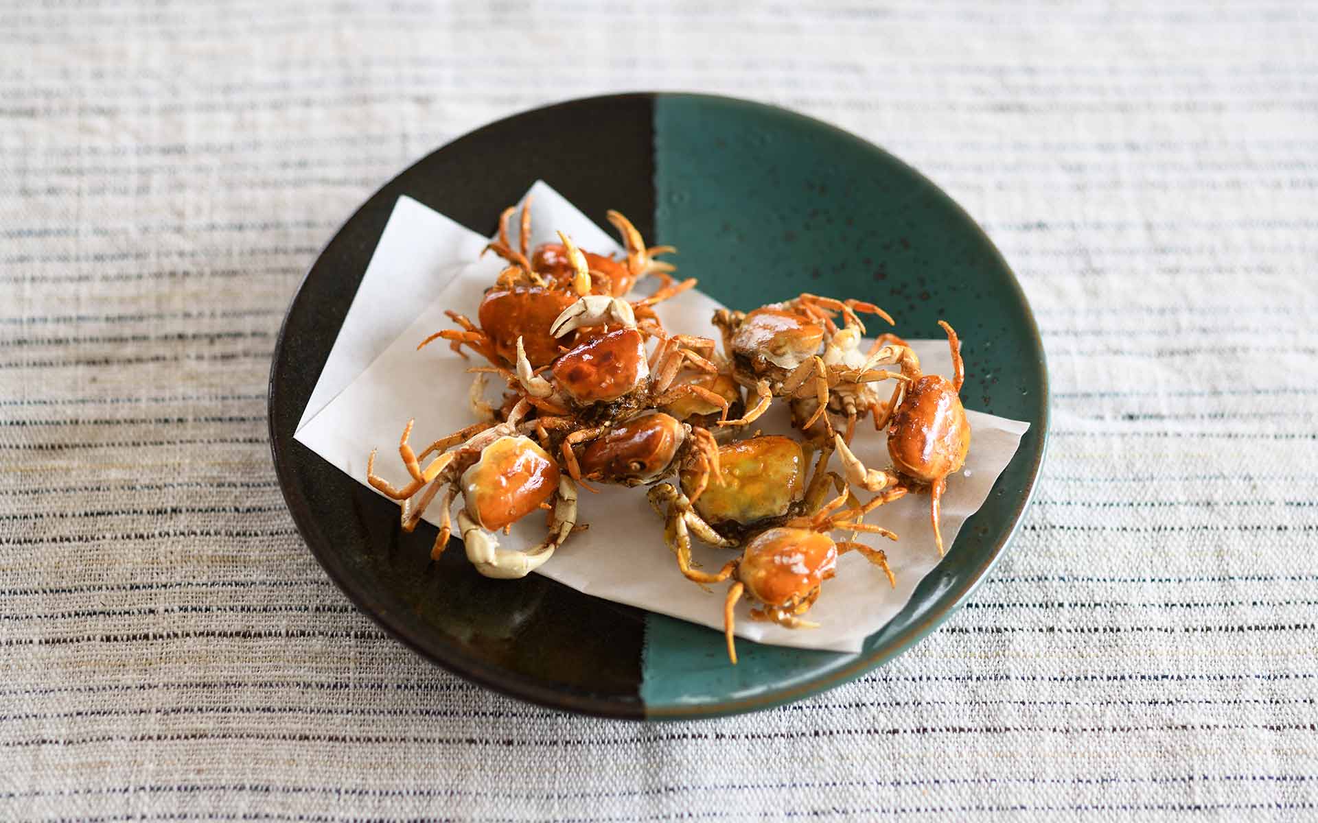 GWが終わったころからいつも思い出すのが今日の食材、サワガニ。今はもう閉店してしまったのだけど昔よく行ってた地元の居酒屋で、その時期になるとカウンターに虫かごが置かれ、サワガニが登場していた。