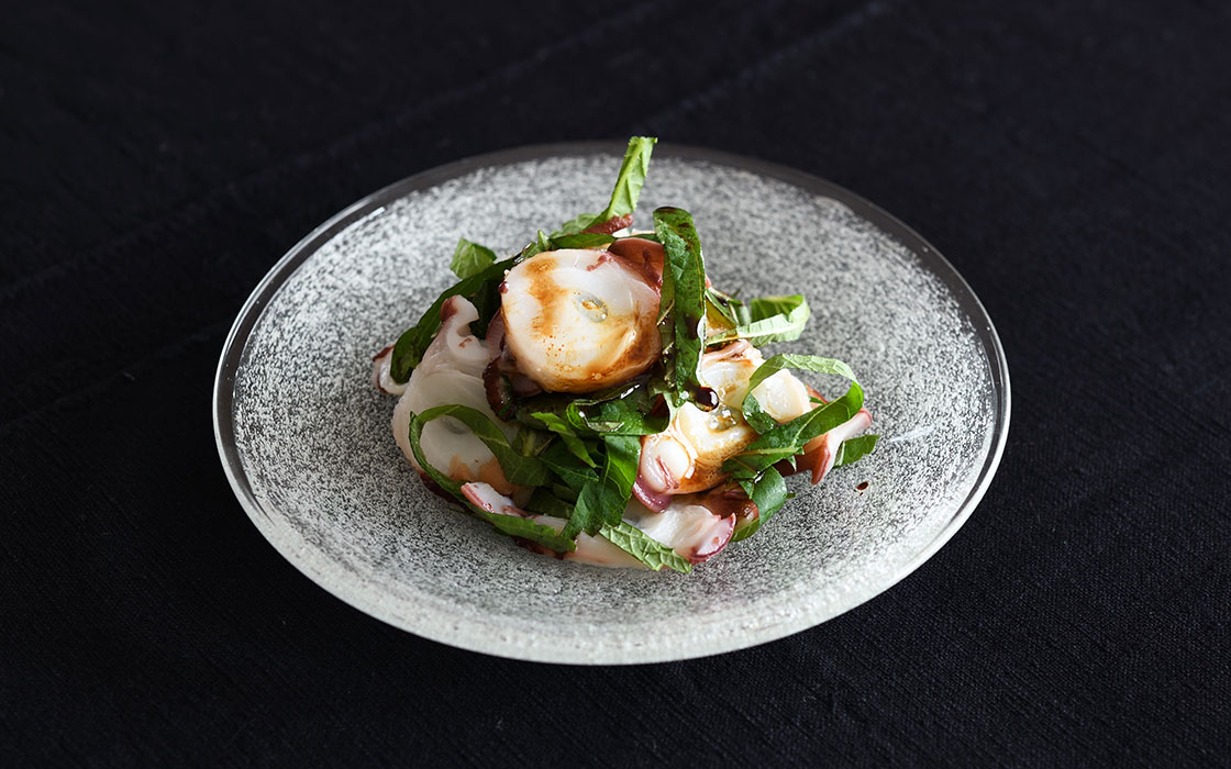 タコは軽くボイルしたもの。これを切ったエゴマと合えるだけ。ちなみに、この皿自体はどんな刺身にも合います。赤身も、ピンクっぽいものも、白身も。魚のみならず、例えばスライスしただけのトマトでも良いし。使いやすい。