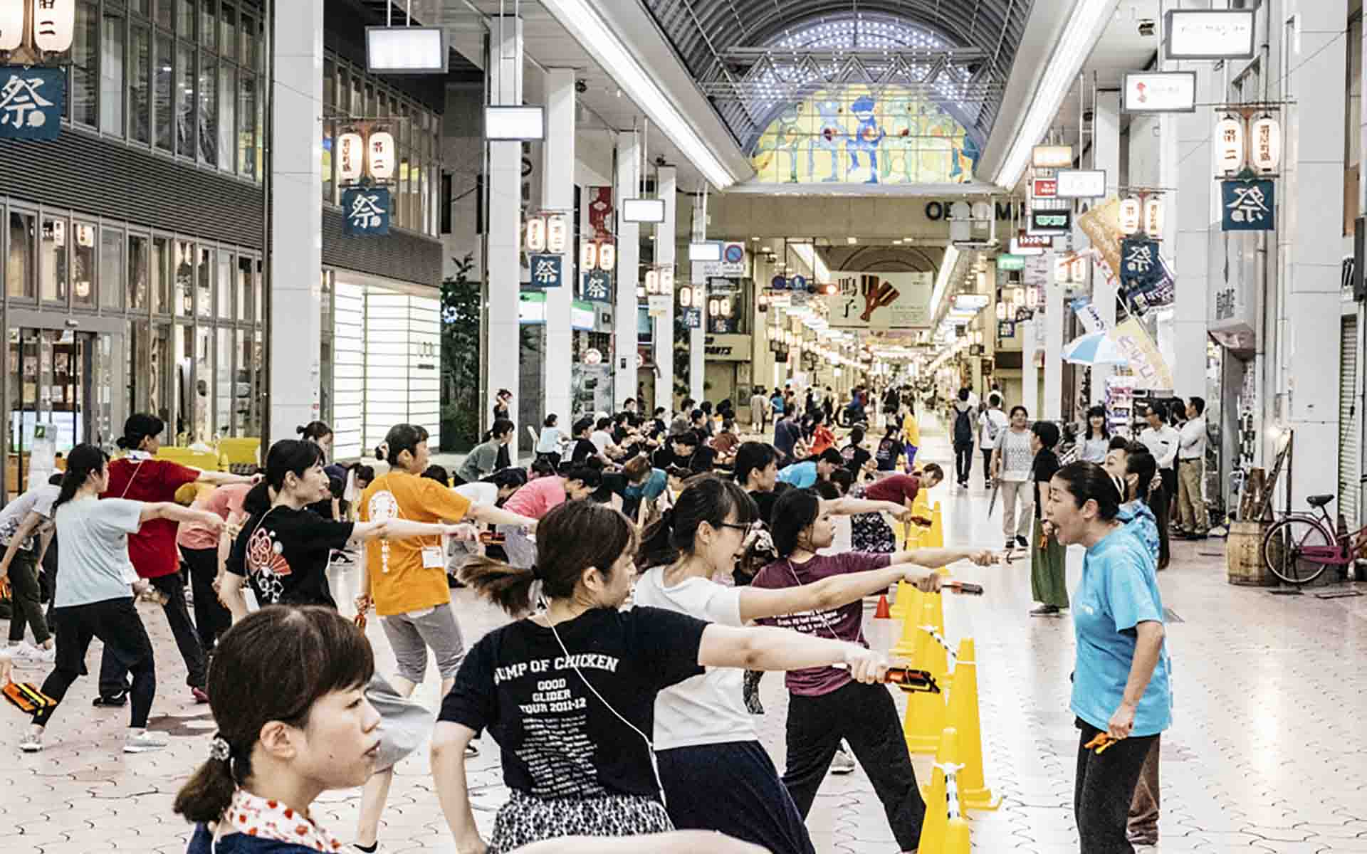 そんな怒号が響くのは、2018年7月の帯屋町筋商店街アーケード。一ヶ月後に控えた「よさこい祭り」に向かって、帯屋町筋のよさこいチームが練習をしていた。