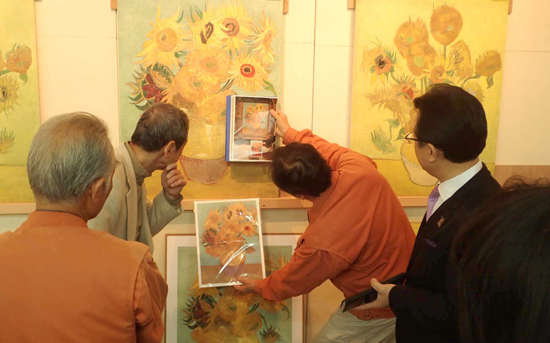 フィラデルフィア美術館所蔵のゴッホの「ヒマワリ」検証の様子。 (画像提供:大塚オーミ陶業株式会社)
