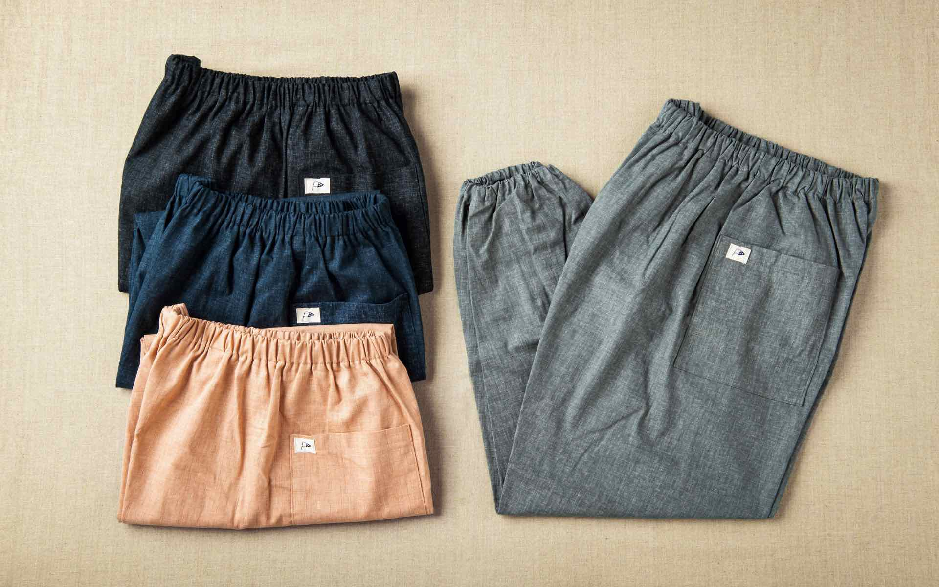 履き心地の良さを守りつつも、ポケットにデザインを加えたり、新しい素材を取り入れたりと、「もんぺや」の新たな展開が楽しみです。