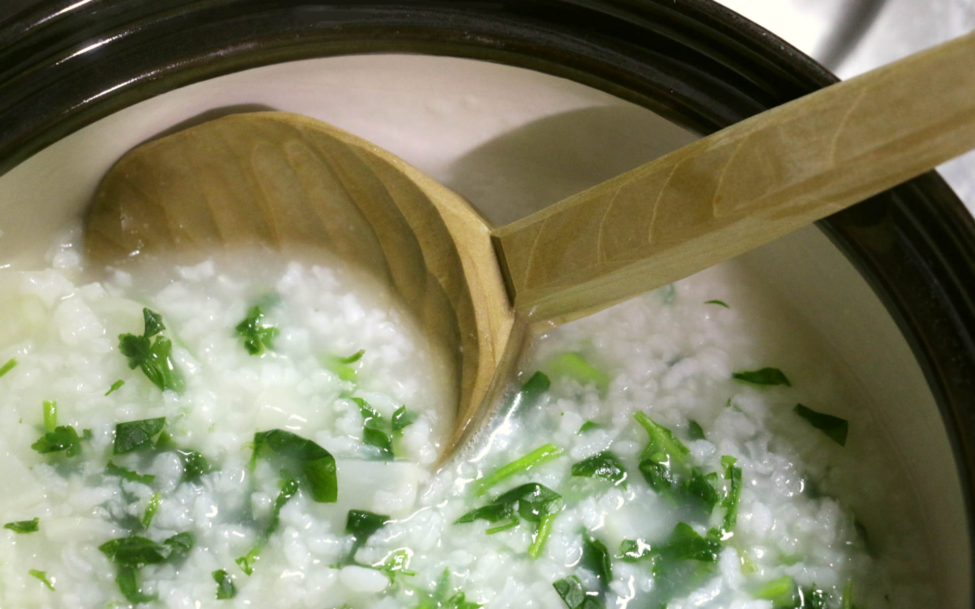 七草がゆ。土鍋と合わせて、絵になるたたずまいでした