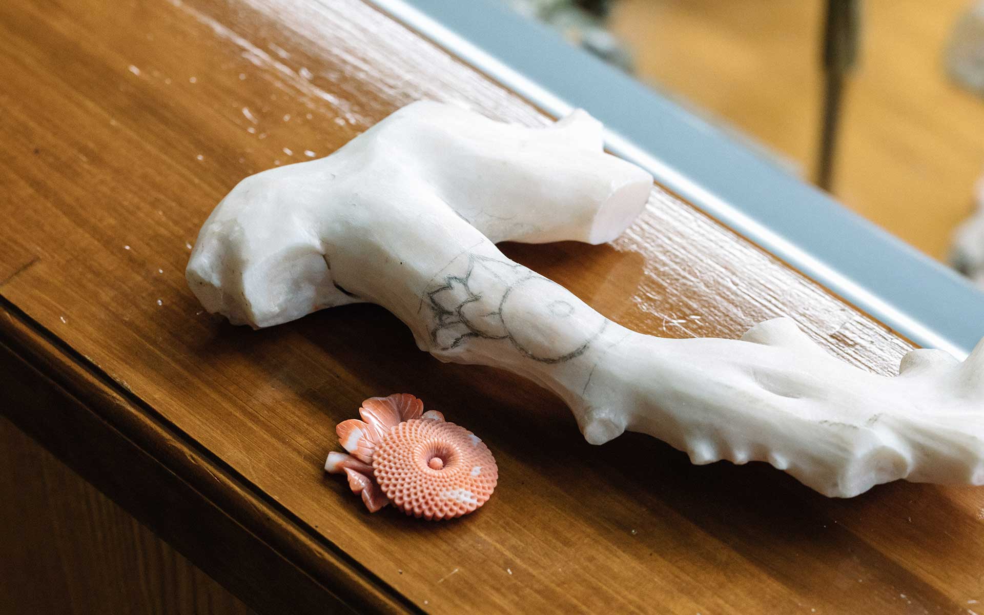 「象牙なんかに似たようなものがありますけど、サンゴでやるのは難しいので、他所にはないものですね」