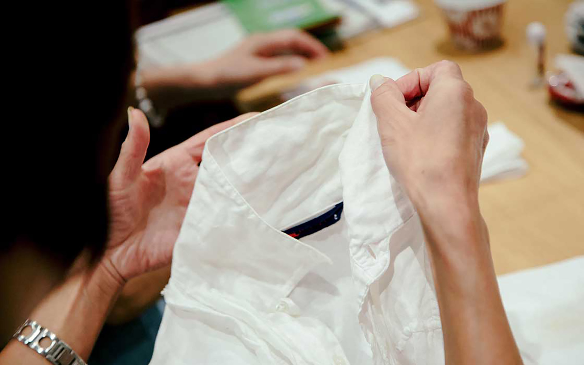 当日は参加者に、汚れが落ちなくて困っている衣類などを持参してもらった。