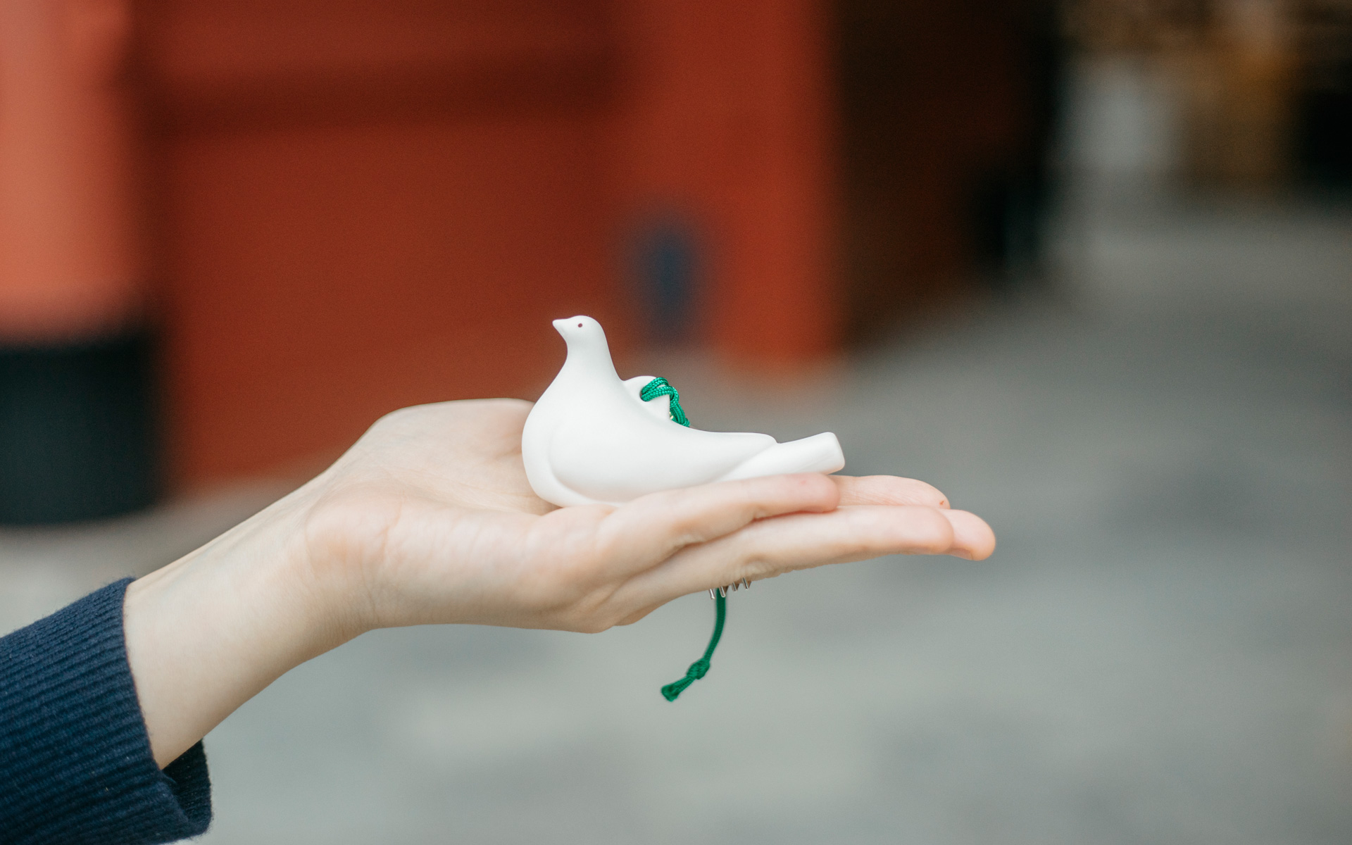 手のひらにちょこんと乗るサイズは、お守りにも置物にもぴったり。吹くと鳩の鳴き声に似た音を出すそうなので、ぜひ確かめてみてくださいね。