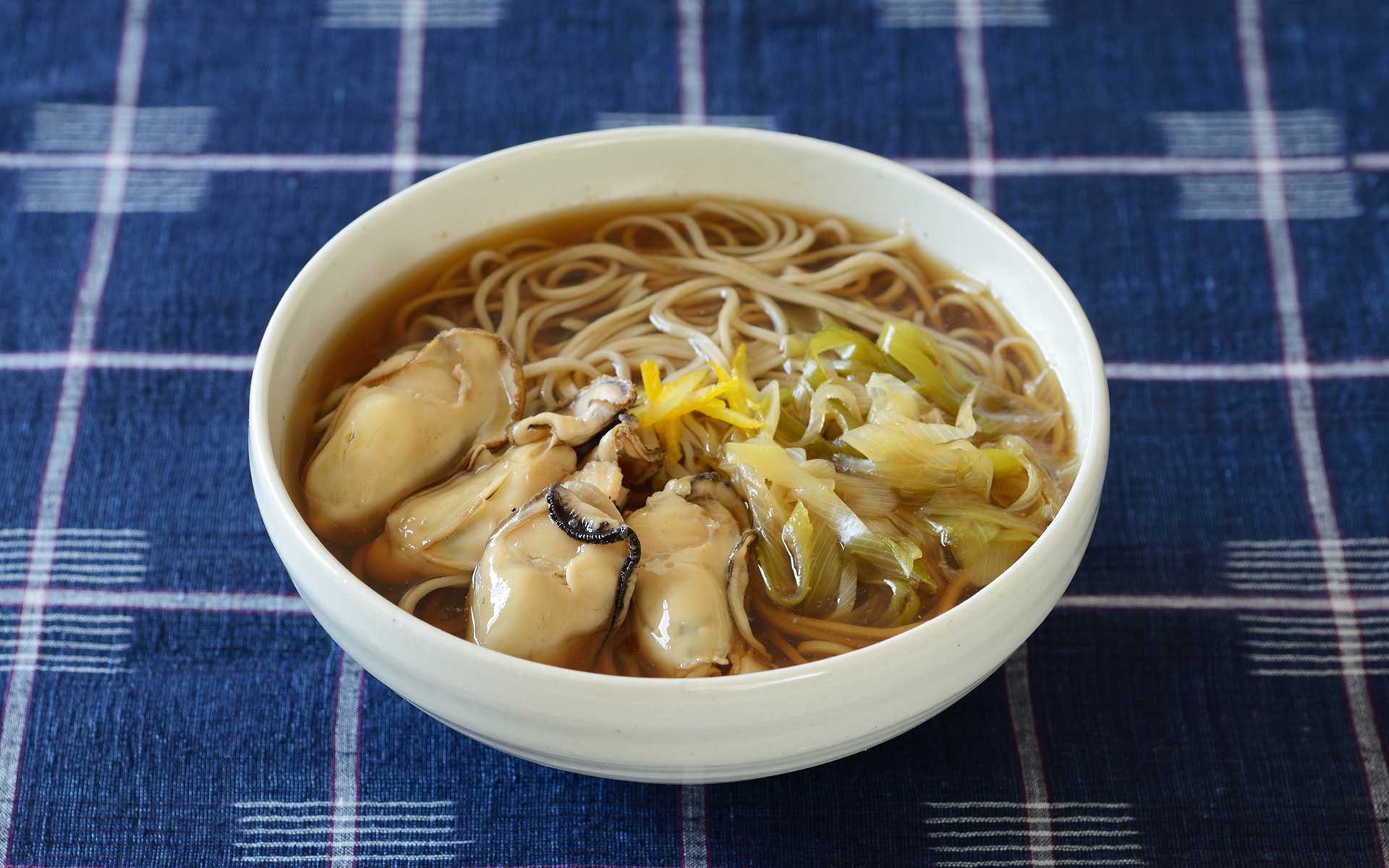 そばを茹でる時はたっぷりのお湯で。かきも煮すぎないように、ネギも好みの感じで。