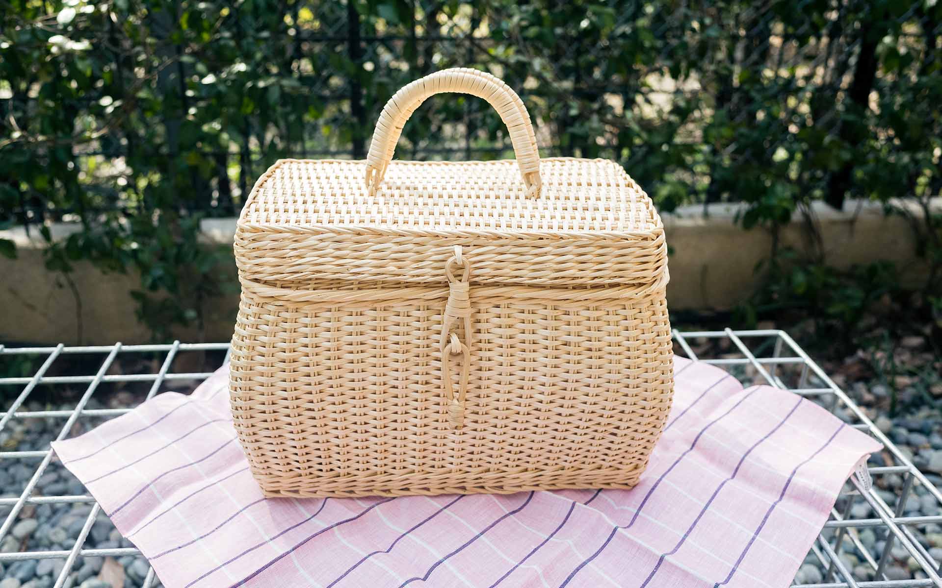 また、今回のバスケットは鞄の産地ならではのアイテム。江戸時代の柳行李は、荷物を入れて運搬するのに使われていた、まさに現代の鞄です。明治の頃には、柳行李に革の持ち手が付いて鞄の形に発展し、更に製法も応用されてバスケット型も作られるようになりました。