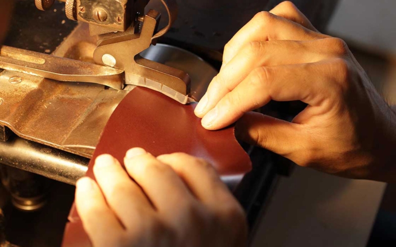 職人さんがランドセルを縫製しているところ。東京・土屋鞄製造所の工房にて