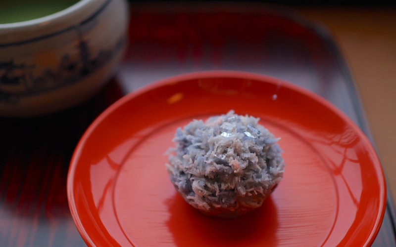 6月の和菓子、雨に咲く紫陽花のしずく